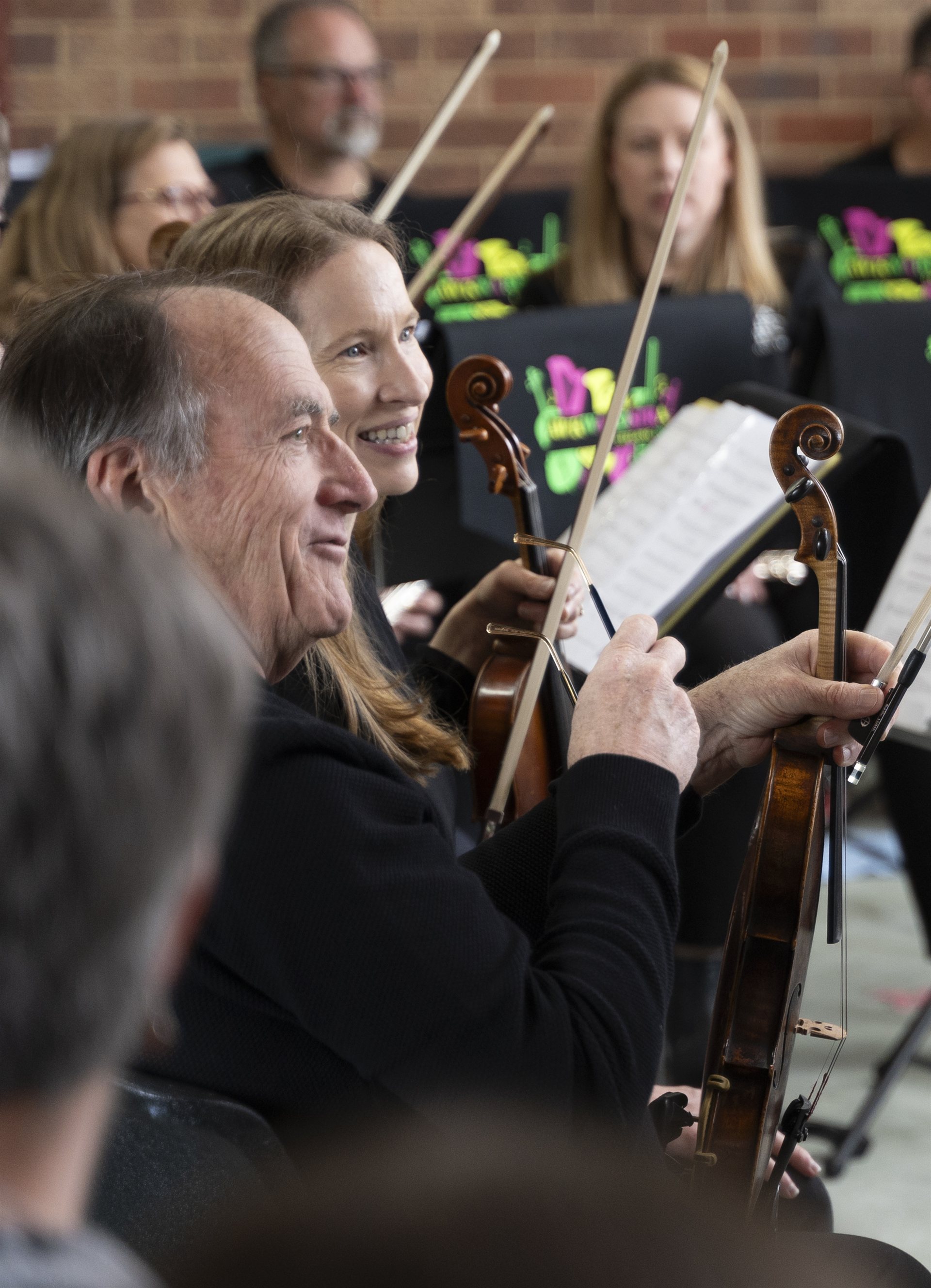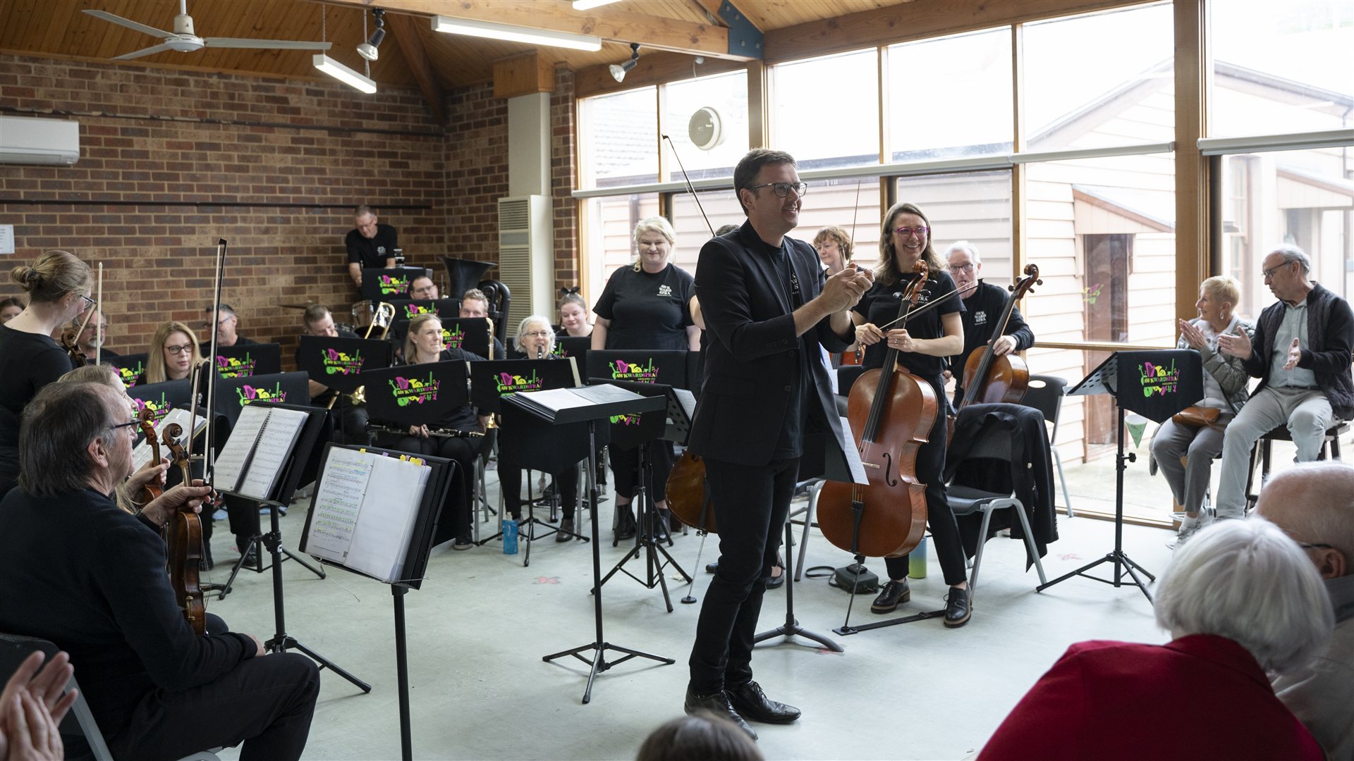 In October 2024, we were asked by the Geelong Art Society to open the Senior's Exhibition in celebration of Senior's Week. We squeezed into the art studio at the Shearer's Arms Gallery and filled the place with sound. There was standing room only for the audience, who enjoyed themselves thoroughly.