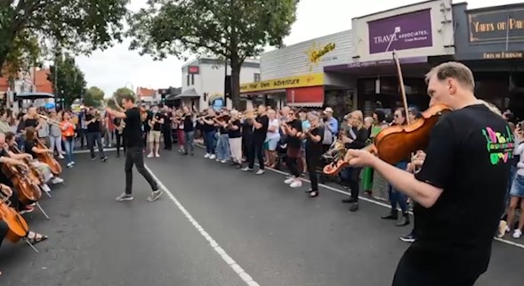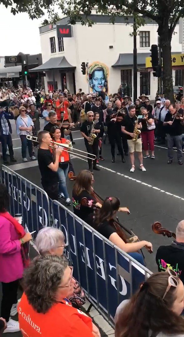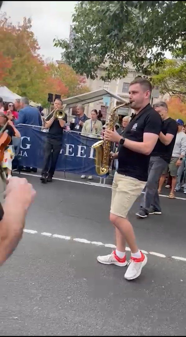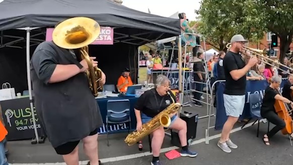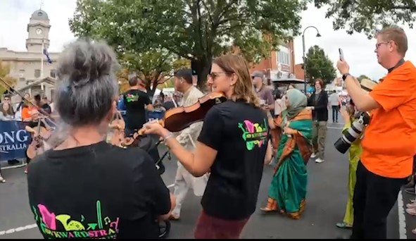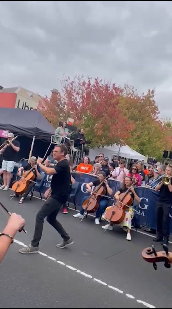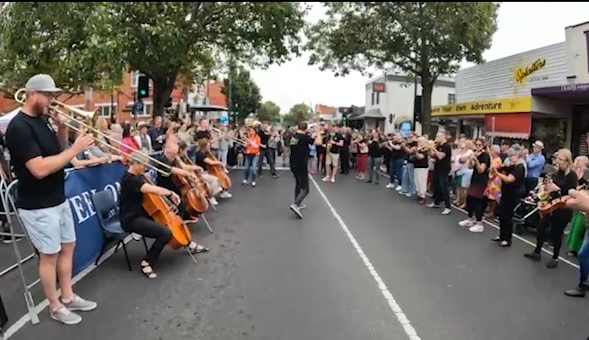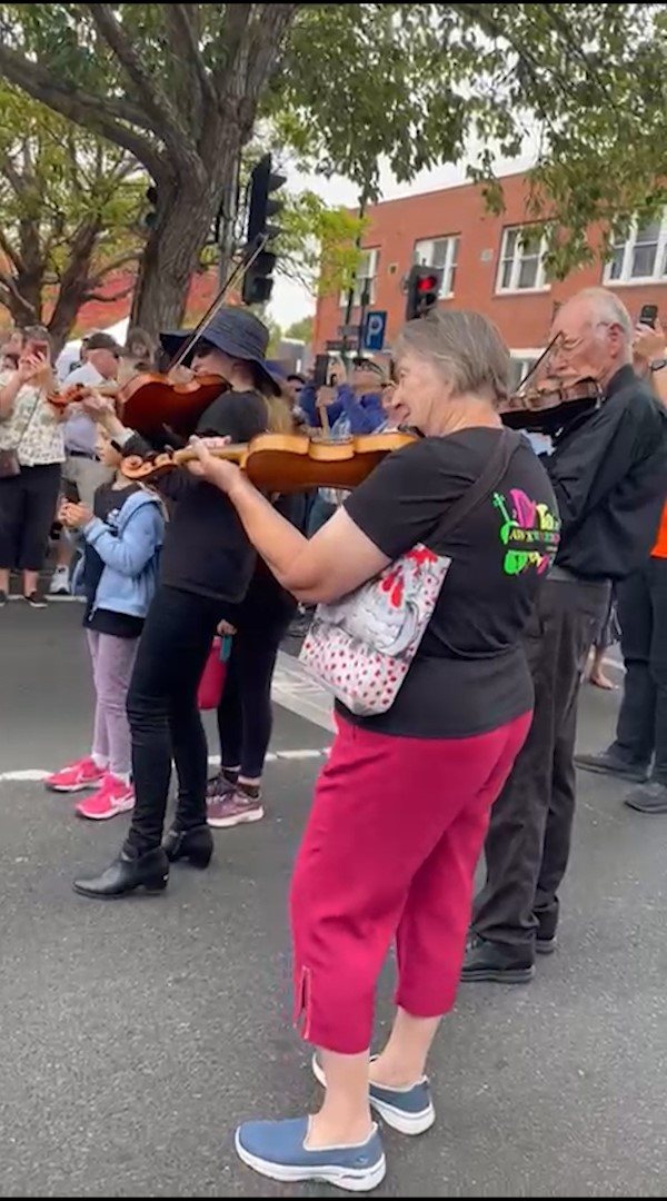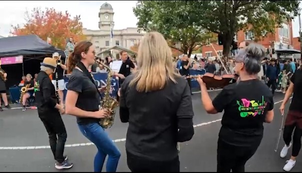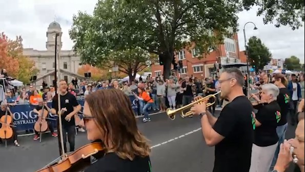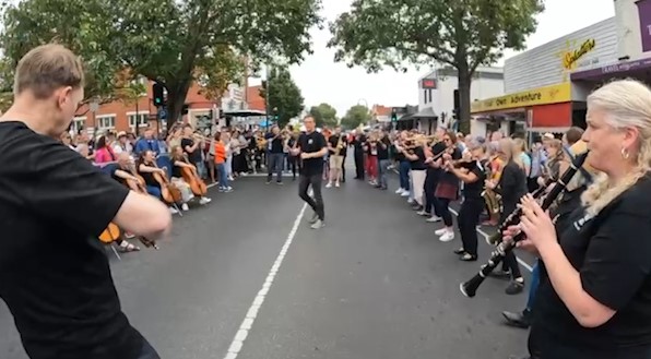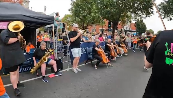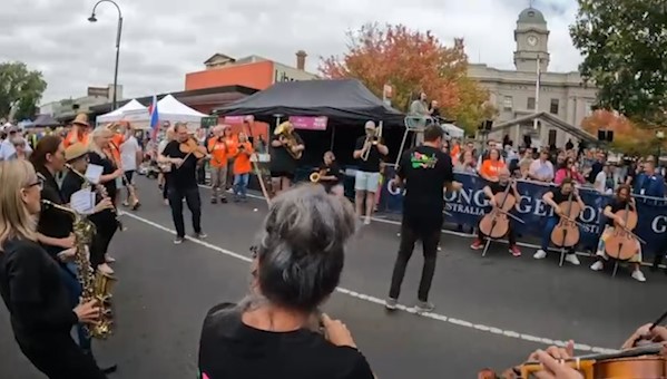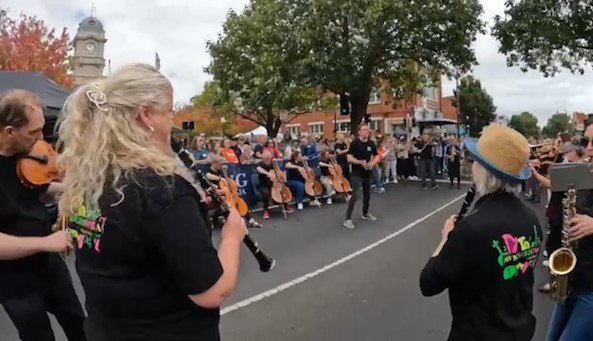 In February 2024, we were asked to open the Pako Festa parade with a flashmob. We played "Respect" by Aretha Franklin in front of the Geelong West Town Hall. Our musicians emerged from the crowd in waves, staggering the start of the song.