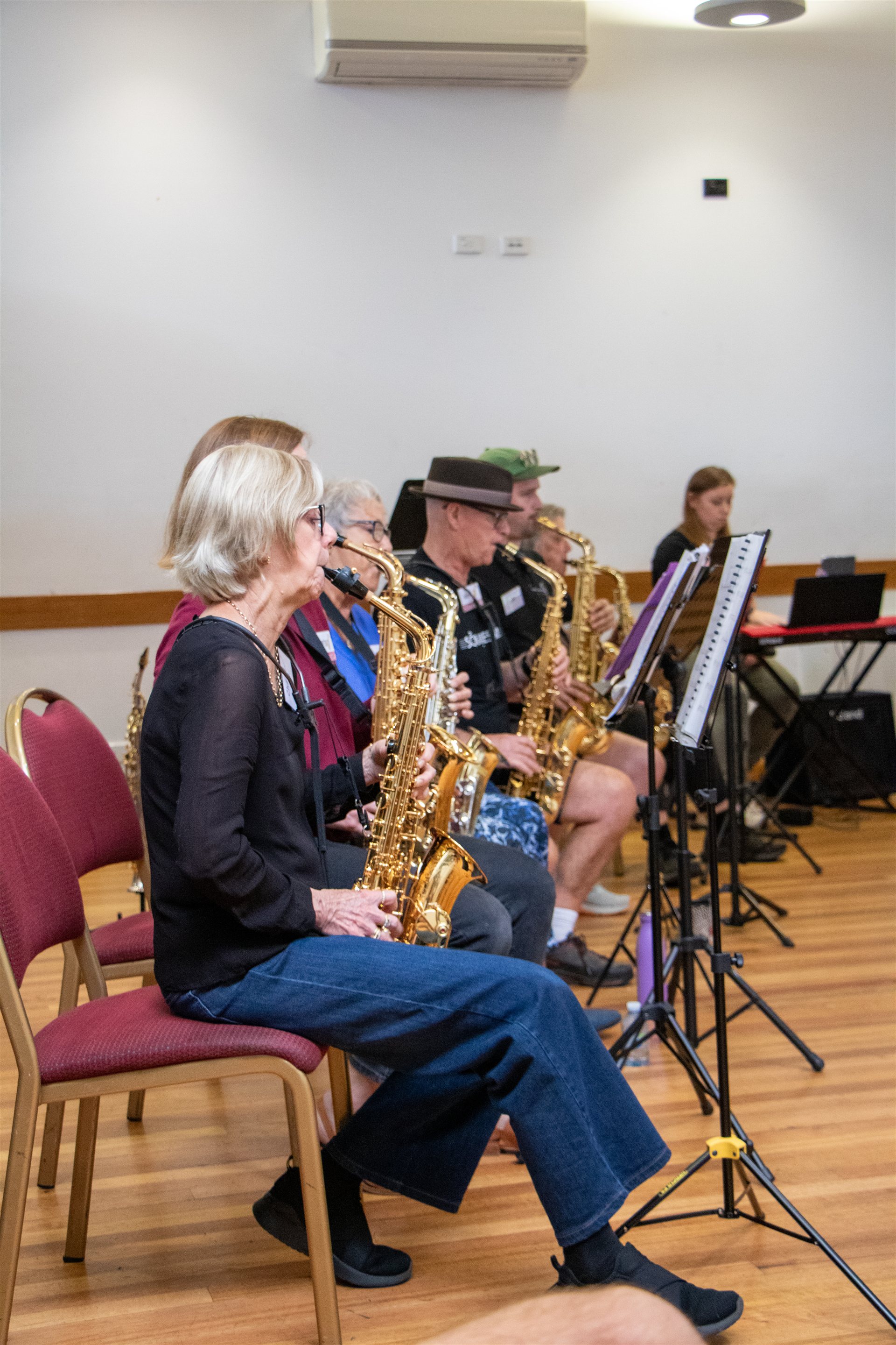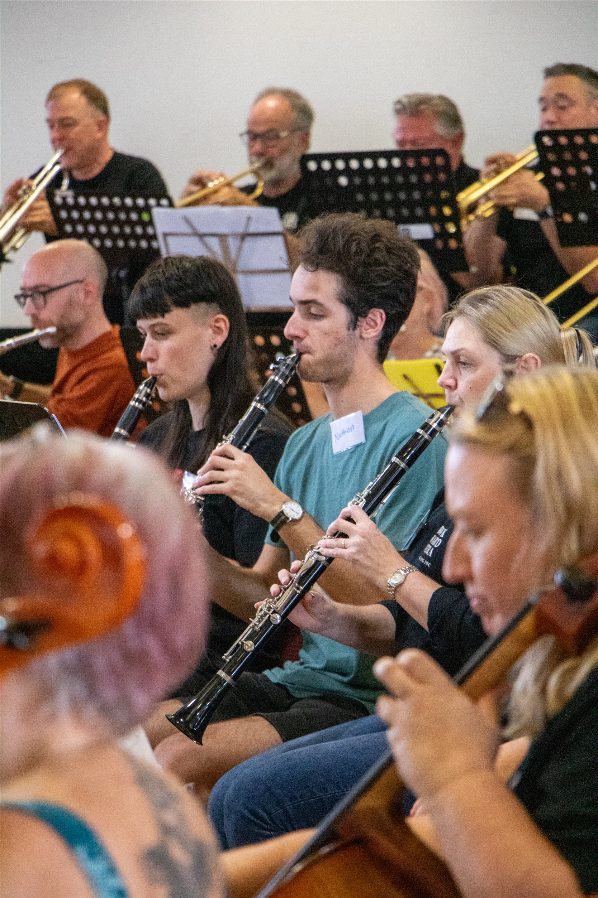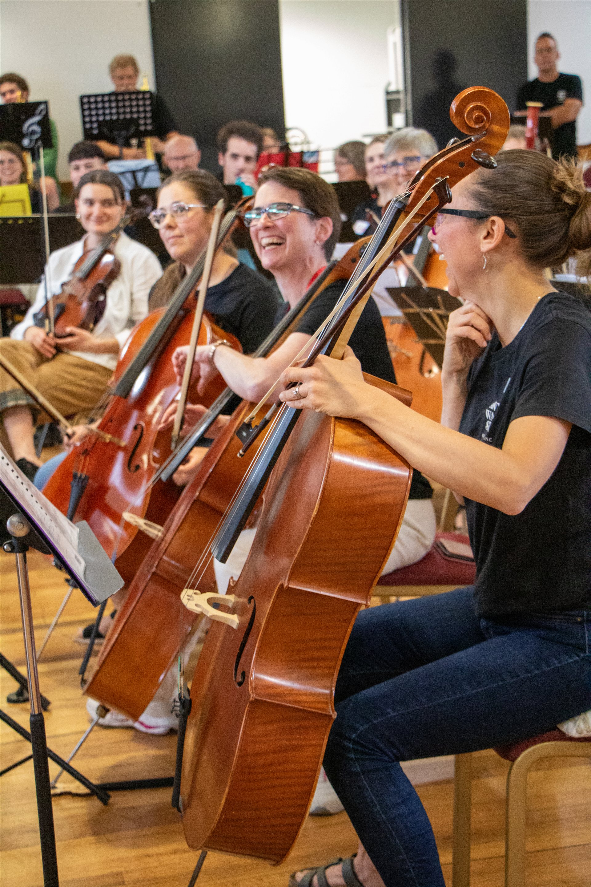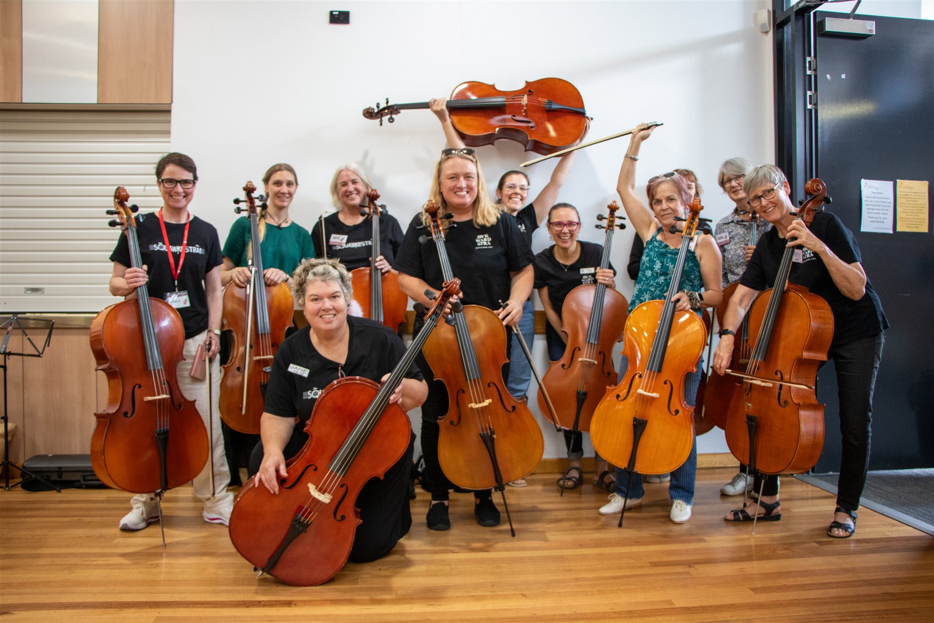 In February 2025, our "sister orchestra", Squawkestra sent a busload of musicians down the highway from Melbourne to join us at the Vines Road Community Centre for a day of fun, laughter and collaborative music playing. We played for each other and then joined together to play two pieces as a giant ensemble of 80 musicians. Led by our Musical Director, Joel Carnegie and Carl Polke from Squawkestra, this is destined to become an annual event.