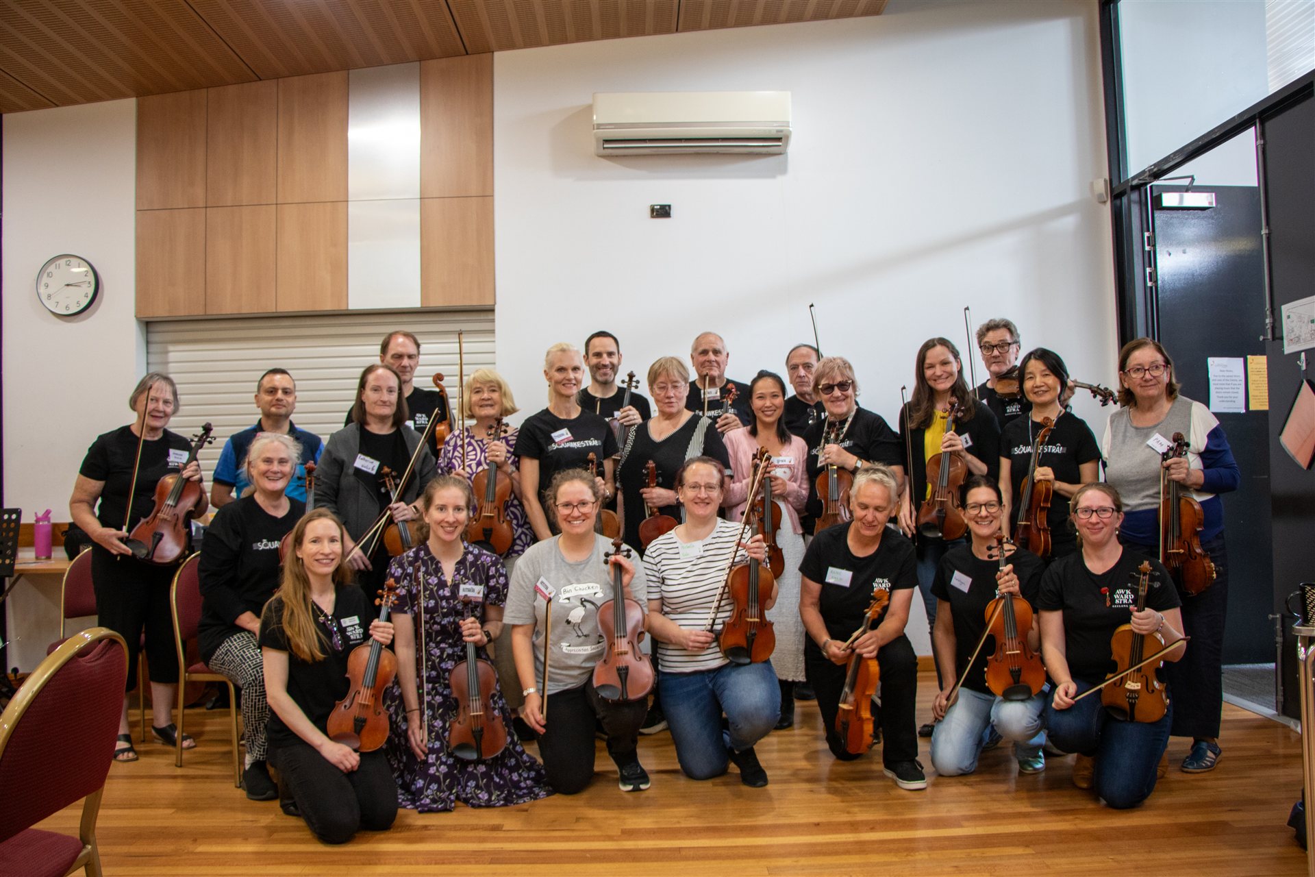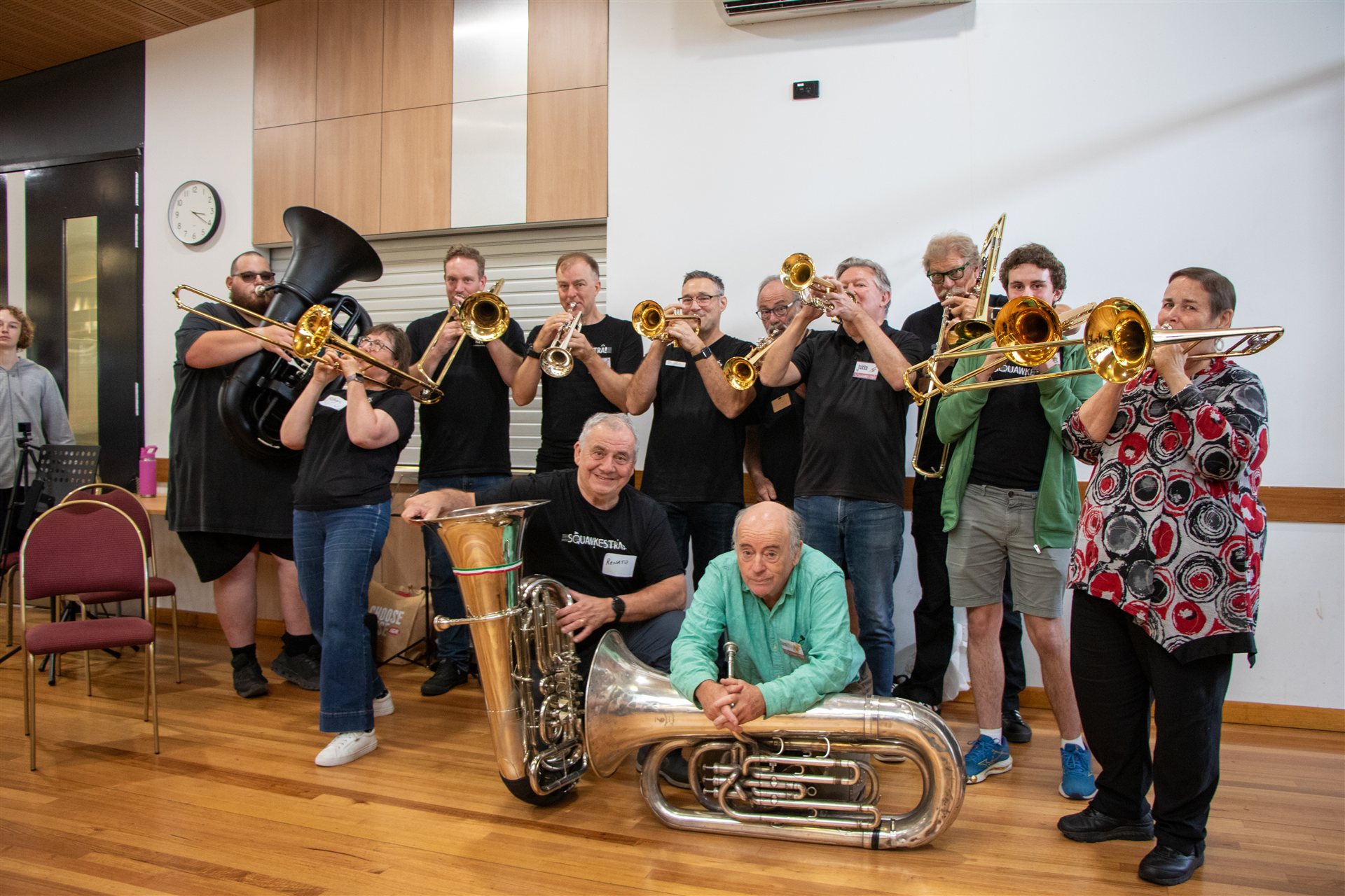In February 2025, our "sister orchestra", Squawkestra sent a busload of musicians down the highway from Melbourne to join us at the Vines Road Community Centre for a day of fun, laughter and collaborative music playing. We played for each other and then joined together to play two pieces as a giant ensemble of 80 musicians. Led by our Musical Director, Joel Carnegie and Carl Polke from Squawkestra, this is destined to become an annual event.
